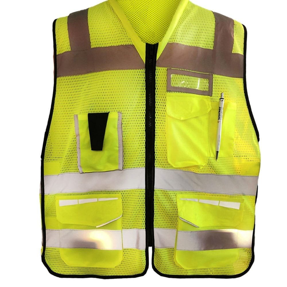 אפוד תקני! ווסט בטיחותי למנהלים עשוי מרשת מלאה וקלה עם כיסים, סגירה קדמית עם רוכסן.